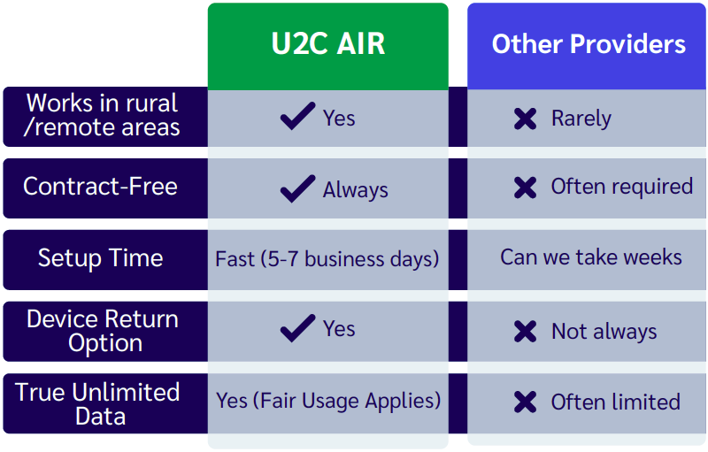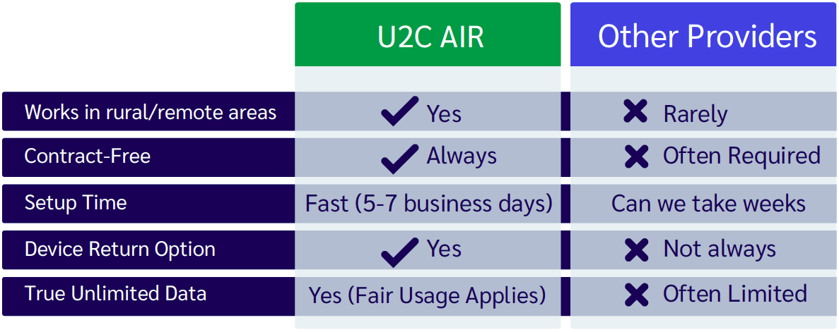 Location Shouldn't limit your lifestyle. With U2C Air, enjoy: